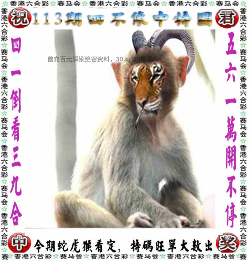 | 113期:今期蛇虎猴看定,特碼旺单大数出开蛇13准 ①杀肖:猪鸡龙 ②图解:蛇虎猴牛羊 ③单数+大数 |